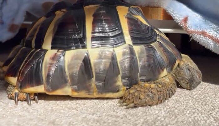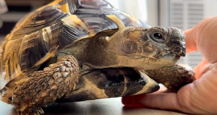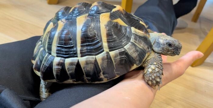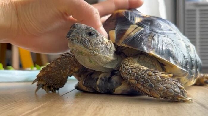 とある家庭で暮らす、ヘルマンヒガシリクガメのぽーちゃん。
