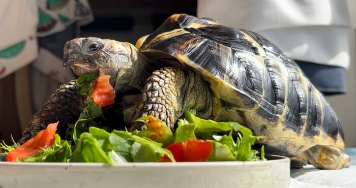 とある家庭で暮らす4歳のヘルマンヒガシリクガメのぽーちゃん。