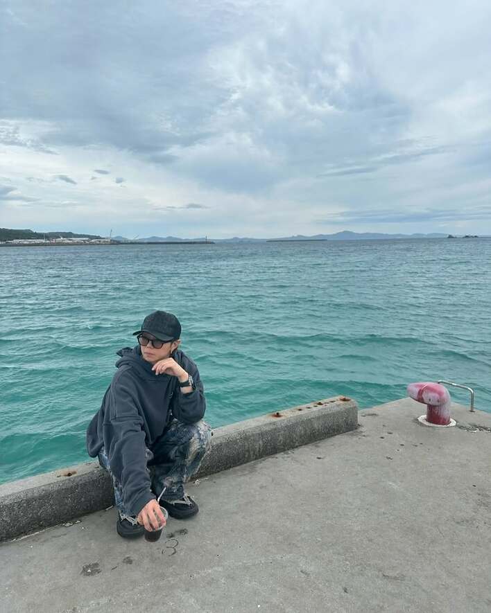 公開された写真には、上下黒のコーディネートでキャップとサングラスを身につけた北山さんが、青く透き通った沖縄の海をバックに、堤防で腰掛けている様子が!