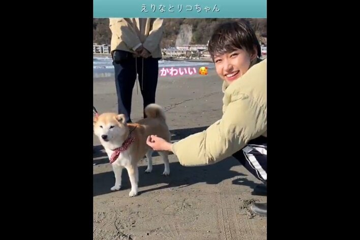 白本さんのオフショットは動画で、「可愛い~」とニコニコでリコちゃんを撫でています。一方の西垣さんのオフショットは写真で、リコちゃんとともにカメラ目線でにっこり笑顔を見せています。