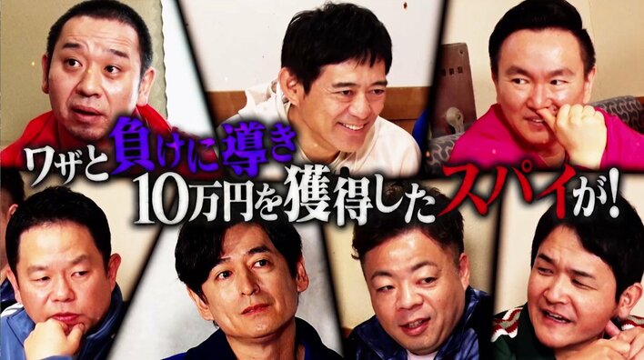 実は、濱家隆一(かまいたち)さんを除く、博多華丸さん、博多大吉さん、大悟(千鳥)さん、ノブ(千鳥)さん、山内健司(かまいたち)さん、ダイアンのうち、1人がスパイとなってチームが負けるように導いていたのです。