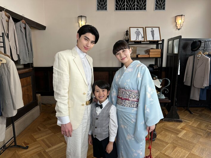 番組公式Xでは、第3話でなつ美と瀧昌が訪れた、テーラーでのオフショットが紹介されています。