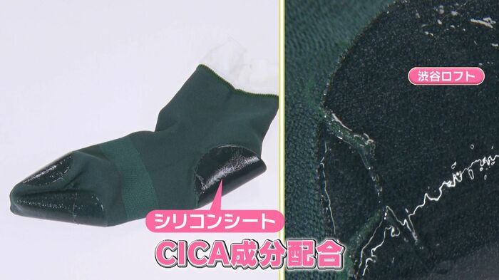 使用している糸や中のシリコンシートにCICAが配合されているので、乾燥しやすいかかとやつま先に密着します。