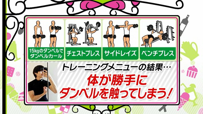 普段のトレーニングメニューを紹介しつつ、「最近は、ずっと筋肉のことしか考えていないんです(笑)。何気ないときでも家にあるダンベルを触っています」と告白。