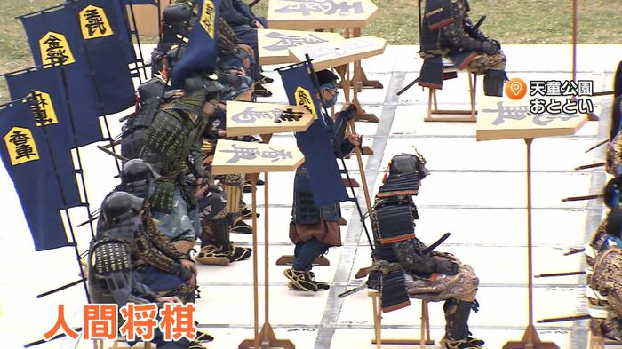 今回の対決の舞台は、山形県天童市の天童公園にある巨大将棋盤の前。