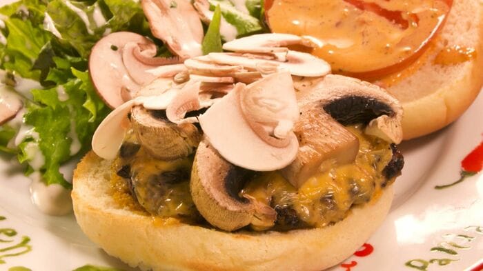 直径約10センチ!肉厚ジャンボマッシュルームのハンバーガー