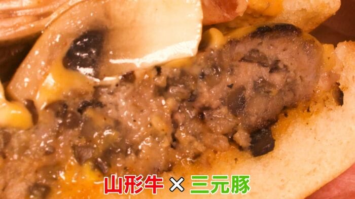 さらに、お肉には山形牛と三元豚の合い挽き肉を使うことで、とってもジューシーなパティとなっています。