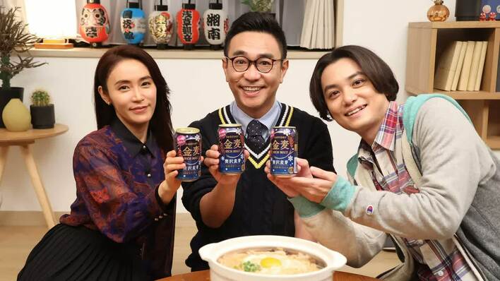 3人で鍋を囲み、楽しく「金麦」を飲むといった、ドラマ内の“オフショット”のような作りとなっている。