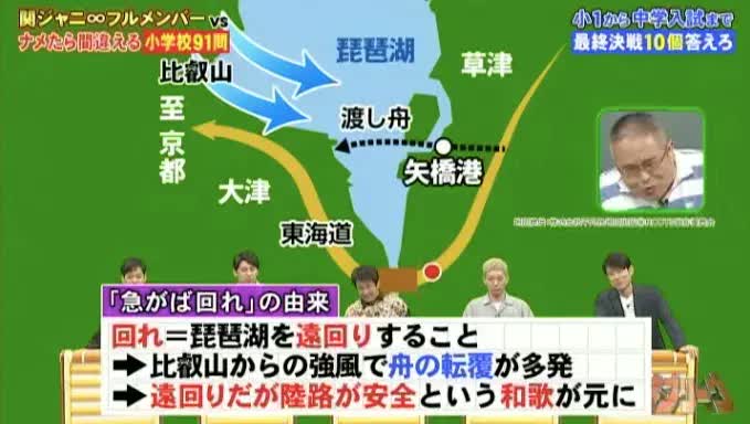 「日本一大きな湖」を答える問題では、地理担当の村瀬哲史先生が正解の「琵琶湖」が由来となったことわざについて教えてくれた。