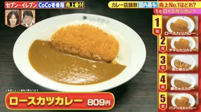 11月10日(水)放送の『林修のニッポンドリル セブンイレブン・ココイチ売上番付SP』では、カレーチェーン店で世界最多店舗数としてギネス世界記録™にも認定された「カレーハウスCoCo壱番屋」の売上番付を発表した。