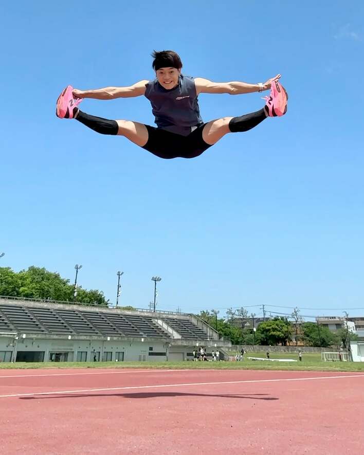 さらに4枚目の写真では、地面とほぼ水平になるように両足を大きく前後に開き、風を切るように腕を振っていて、その姿はまるで空中でハードル走をしているようではありませんか?