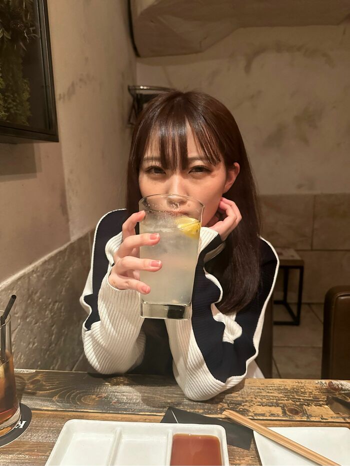 カメラを見上げながら美味しそうにお酒を飲んでいる姿がとってもキュートです!