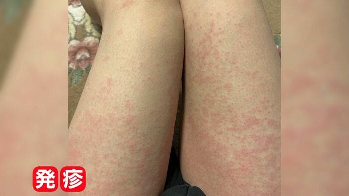 両太ももの広い範囲に赤い発疹が現れたという女性も。