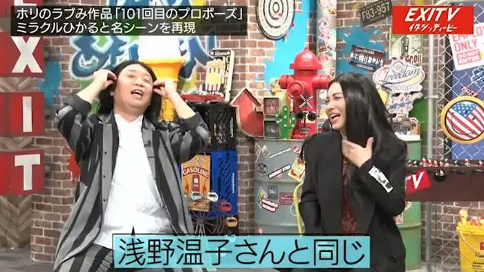 EXITのりんたろー。と兼近大樹が、11月11日(木)に放送された『EXITV~FODの新作・名作をPon!Pon!見せまくり!!~』(フジテレビ)で、ドラマ『101回目のプロポーズ』の話題で盛り上がった。