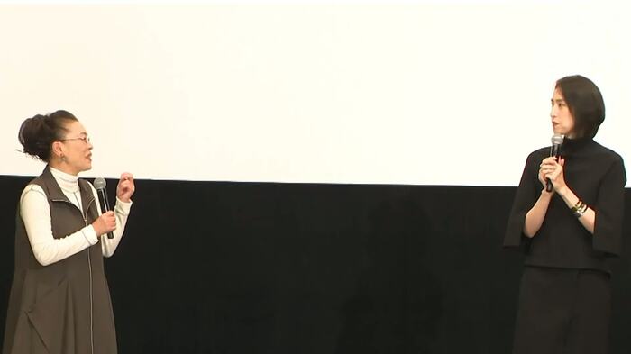 作品を鑑賞したばかりの客席に向けて「映画はいかがでしたか?」と天海が問いかけると、場内大きな拍手で応えた。