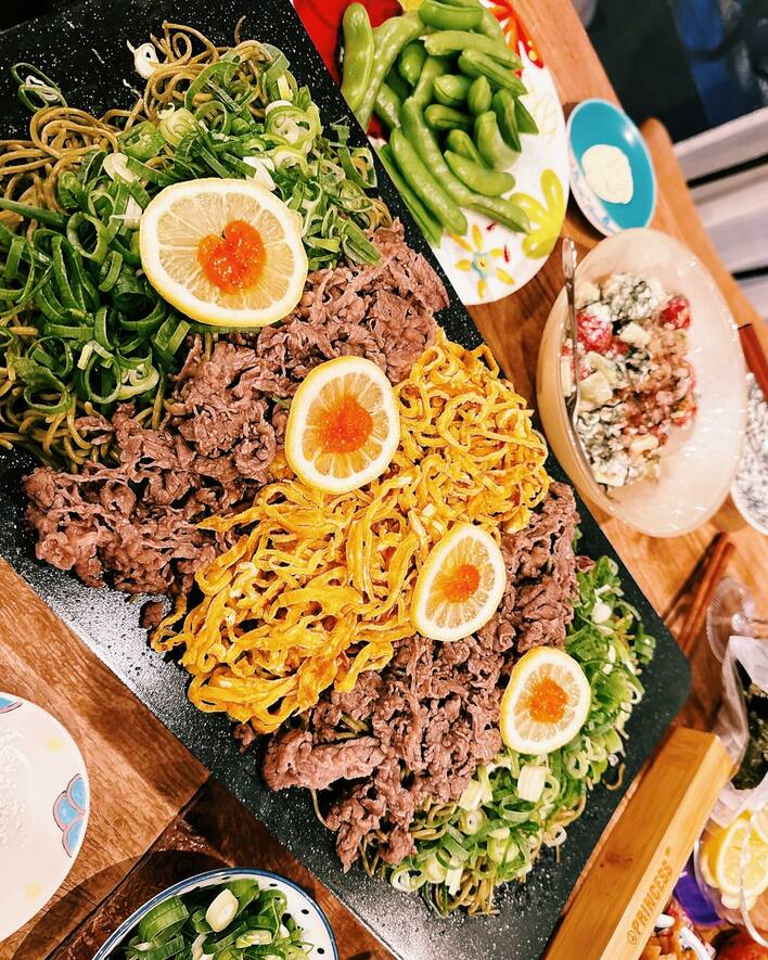 スザンヌがホットプレートで“瓦そば”満喫!彩り豊かな手料理の数々