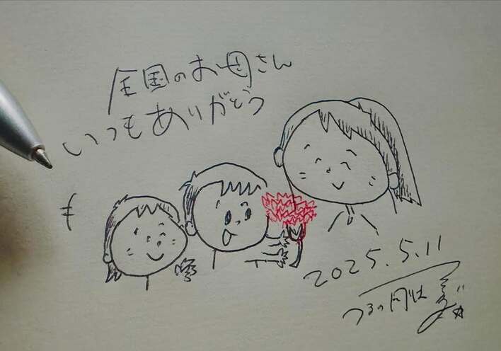 昨年、“母の日”にちなみ家族のイラストを投稿し、全国のお母さんに向けて感謝を伝えていたつるのさん。