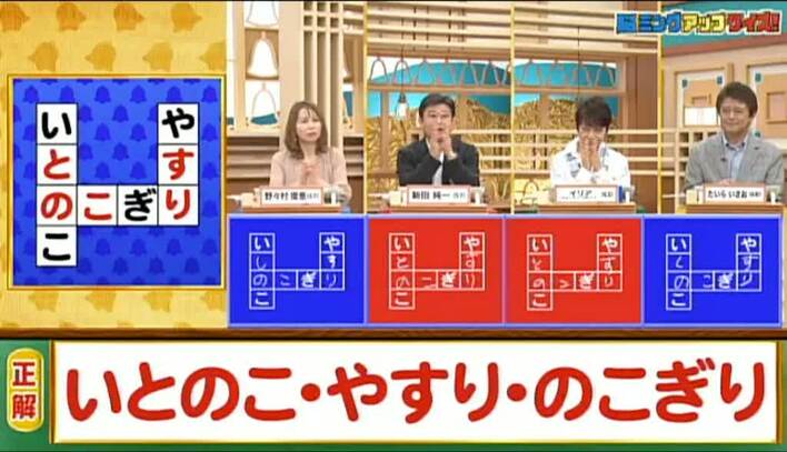 今回の解答者は、タレント・野々村俊恵(57)、俳優・新田純一(57)、バンド「ジューシィ フルーツ」のボーカル・イリア(63)、歌手・たいらいさお(68)の4名。