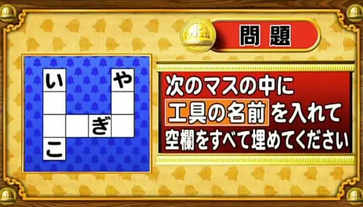 木を切ったり、表面を滑らかにしたり…。ヨコ列の3文字目に「ぎ」がつく工具は割と浮かびやすいかも。