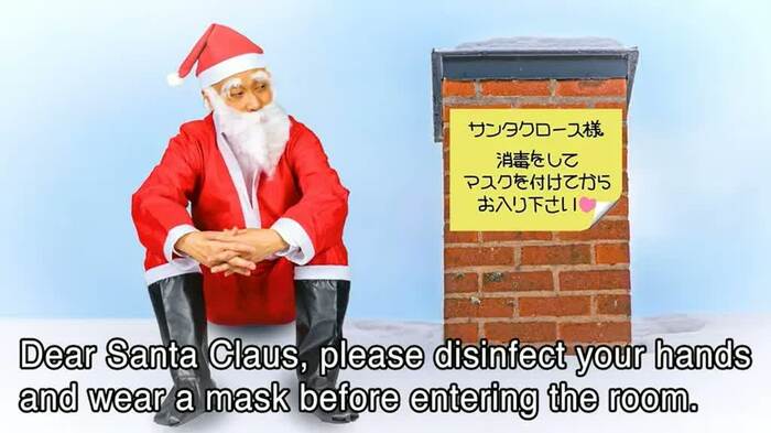 「サンタクロース様、消毒をしてマスクを付けてからお入りください」。