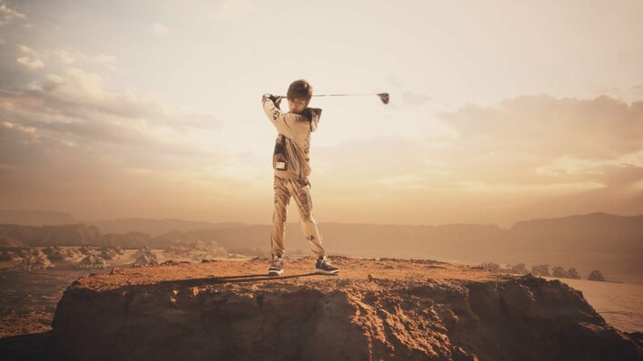 1スイング中にウェアだけがシームレスに変わっていく見事な映像が完成しました。