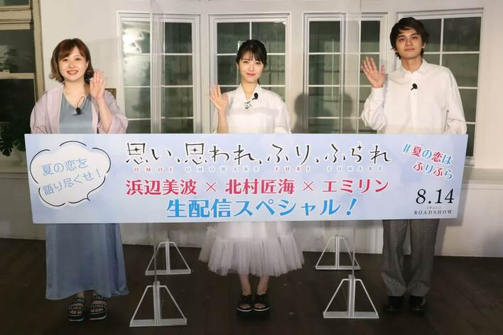 8月14日(金)より公開となる映画「思い、思われ、ふり、ふられ」のYouTube生配信イベントが8月4日(火)に開催され、主演の浜辺美波、北村匠海に加え、特別ゲストとしてYouTuberのエミリンも参加した。