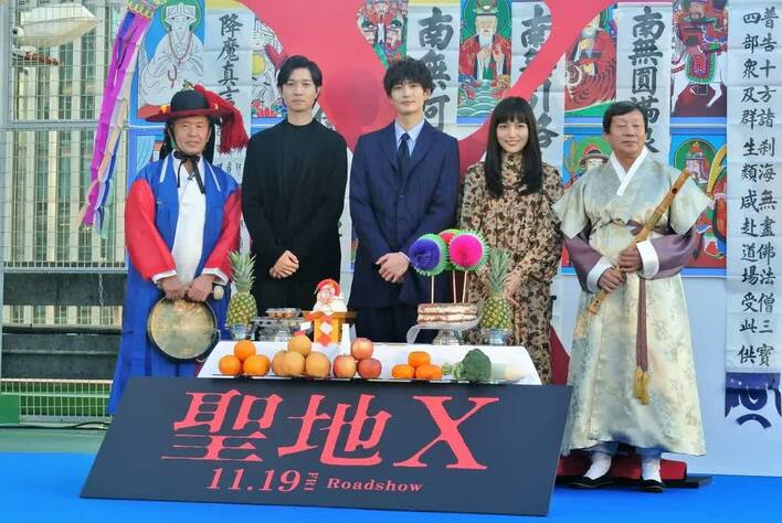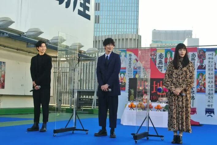 11月13日(土)、映画「聖地X」の大ヒット祈願イベントが東京・銀座の東映本社屋上で行われ、主演の岡田将生、共演の川口春奈、薬丸翔が出席した。