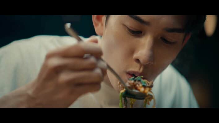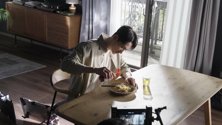 スタンバイ中はエアーで食べる練習やマルホン胡麻油をかける動作の練習を繰り返し、本番では料理を頬張ったあとにカットがかかると、「ハフハフ」と熱そうに口を開けたり、手で口元を扇いだりする様子もみられたとか。