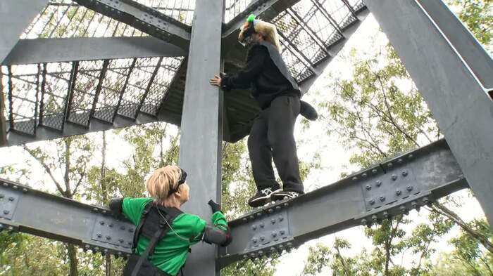 リリーが盛山を指差して「モノノケがおった!」と叫ぶなど、マイペースにモノノケを探すチーム見取り図。高低差のある遊具にいたモノノケを追い詰めるが、ギリギリのところでかわされて逃げられてしまう。