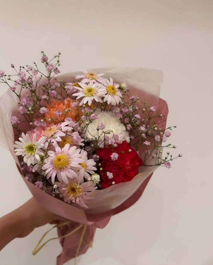 投稿文で「お花は一本一本選んでくれたみたいで ちゃっかり心都も参加してくれたみたいで それだけでもう泣けてくる。」と続けた近藤さんは、赤や白、オレンジのカーネーションや、淡いピンクのデイジー、ピンクのカスミソウなどが包まれた、近藤さんの優しい雰囲気にぴったりなとってもかわいらしい花束を披露!