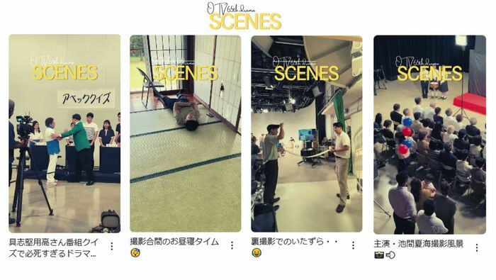 ドラマ撮影期間中の俳優さんたちのオフショットシーンや撮影の裏側シーンを切り取ったショート動画「SCENES[シーンズ]」を公開中。