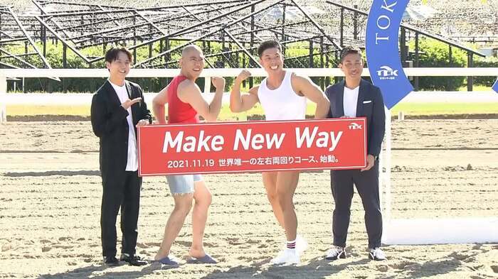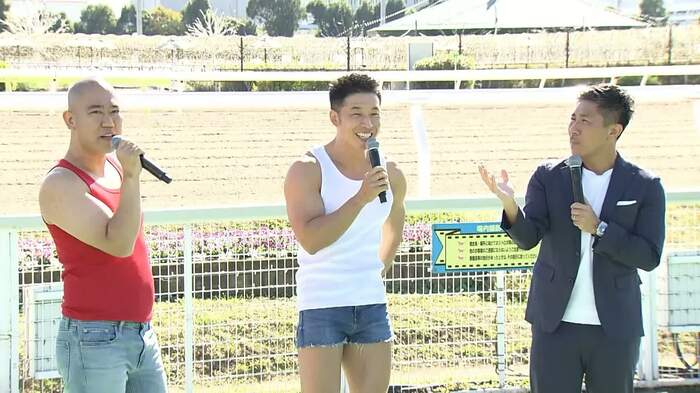 お笑いコンビ・コロコロチキチキペッパーズと、なかやまきんに君、元・サッカー日本代表の前園真聖が11月15日(月)、東京・大井競馬場で行われた左右両回りコースメディア発表会に出席した。