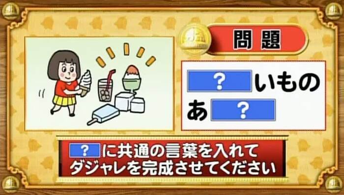 次は、ダジャレ穴埋め問題。「?」に共通の言葉を入れてダジャレを完成させてください。