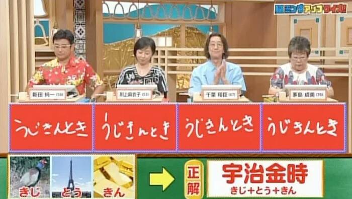 正解は「宇治金時(きじ+とう+きん)」。見事全員が正解!