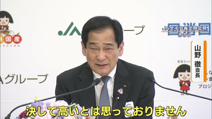 この値下がりについて、全国農業協同組合中央会(JA全中)の山野徹会長は、「店頭の小売り価格の上がり幅は、縮小傾向から直近では下落したとの発表もあり、備蓄米の買い戻し条件付きの販売の効果が表れ始めている」との認識を示した上で、現在のコメの価格について「決して高いとは思っていない」と話します。