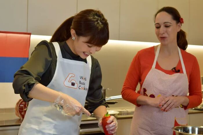 このチャンネルは、各国の料理人を迎え、その国の家庭料理を渡邊アナが学んで行く。第8弾となる今回はセルビア大使館で秘書として働く長門ティヤナさんを迎え、セルビア料理を堪能した。