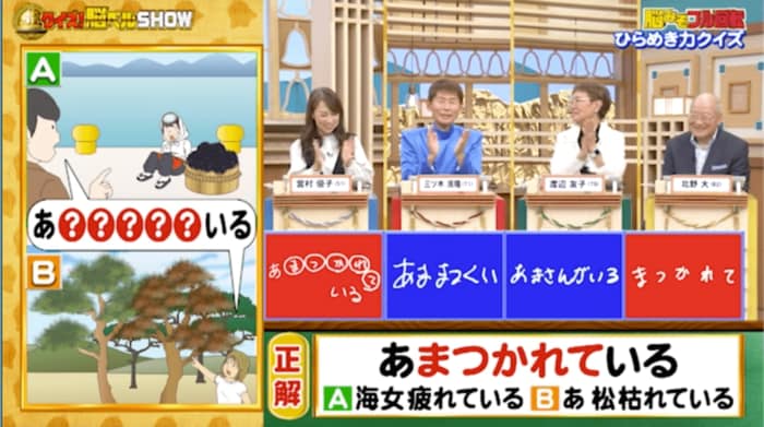正解は「あまつかれている(海女疲れている/あ 松枯れている)」。