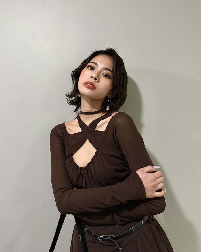写真を見ると、首元にゴールドのネックレスをつけ、黒のタンクトップ姿で頰づえをつくようなポーズを披露しています。セットされていない無造作ヘアに、凜々しい眉毛と、すっぴんであってもカッコよくキマっています。