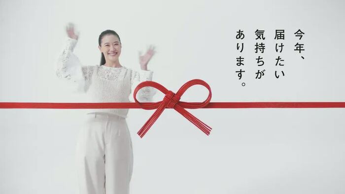 この新CMは、“今年、届けたい気持ちがあります。”をキャッチコピーに、蒼井が、今年なかなか会えなかった両親や親友、お世話になった人達に思いをはせながら、ギフトを選ぶ様子を、「両親への想い」編、「親友へのメッセージ」編、「感謝のギフト」編で演じている。