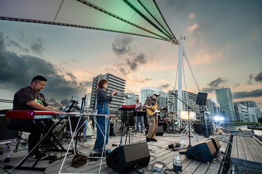 天王洲運河に係留する「T-LOTUS M」の船上ステージからライブをお届けします。