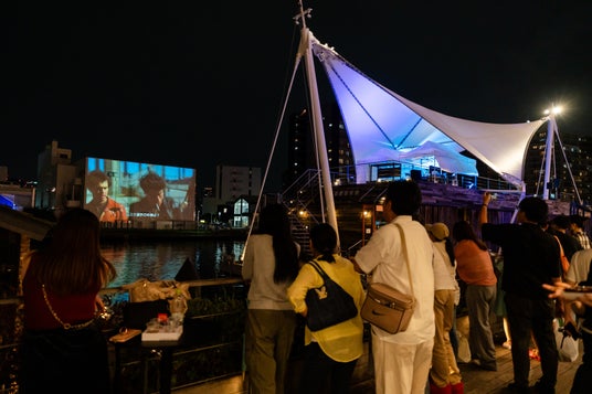 天王洲運河のビル壁面が巨大スクリーンに変わります。運河沿いの夜景とともに天王洲でしか味わえない素敵な映画体験をお楽しみいただけます。