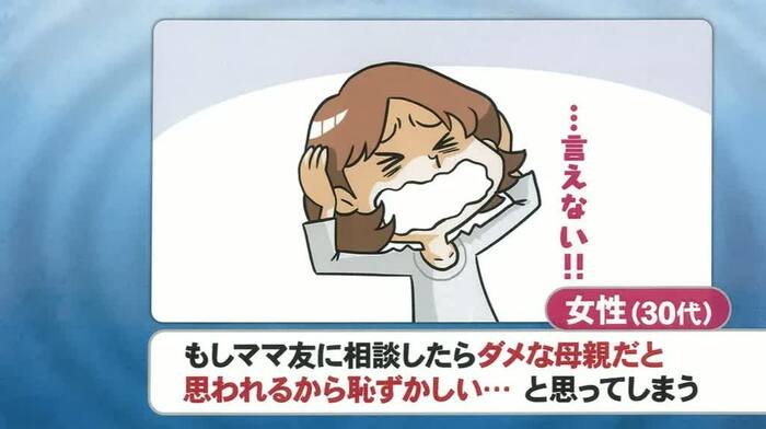 「悩みがあっても相談できない人」というテーマでは、「子供の好き嫌いで悩んでいるが、ダメ母と思われそうでママ友に相談できない」(30代女性)、「夫の浮気が判明して不安定な時、職場の先輩が心配してくれたのに、相談できなかった」(30代女性)というお悩みが紹介された。