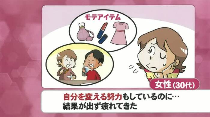 「頑張りすぎない婚活術」でまず登場したのは、「自分を変える努力をして婚活してきたのに、結果が出ず疲れてきた」という30代女性のお悩みだ。