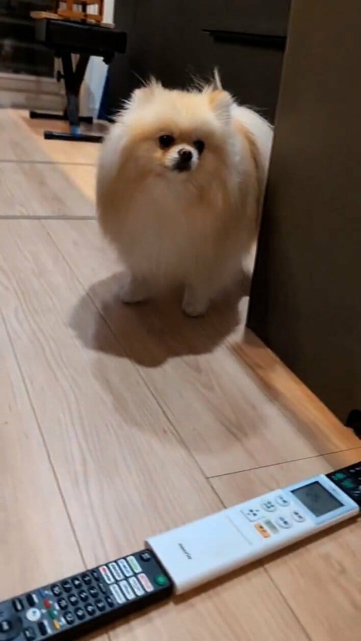 この太くんは人見知りで犬見知り。飼い主さん曰く、超ビビりで超繊細犬だそうで、今年2月に「障害物チャレンジ」と投稿された動画では、一列に並べられたリモコンを越えられず、飼い主さんの顔をチラッチラッっと見て動けずにいるほど。