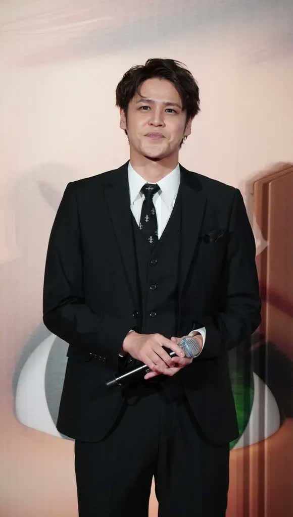 キャラクターの衣装である黒スーツ姿で登場した4人は、ステージに立つとポーズを決めた。