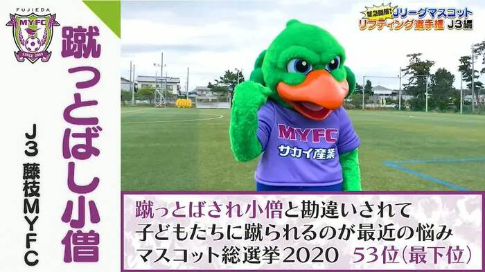 CS放送フジテレビONE スポーツ・バラエティで放送中の『プロサッカーニュース 2020』では、現在、Jリーグのマスコットたちがリフティング対決を繰り広げる「Jリーグ マスコット リフティング選手権」を開催中。