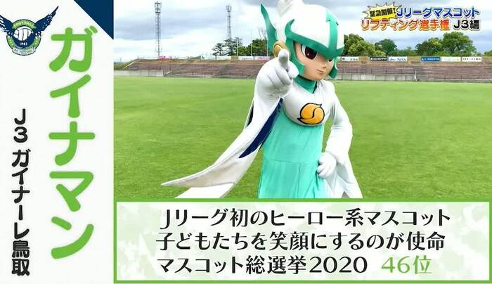 総選挙で2年連続ベスト3の人気者。実はすべてのクラブに年賀状を送るなど、Jリーグ1の「あざといマスコット」としても名をはせている。