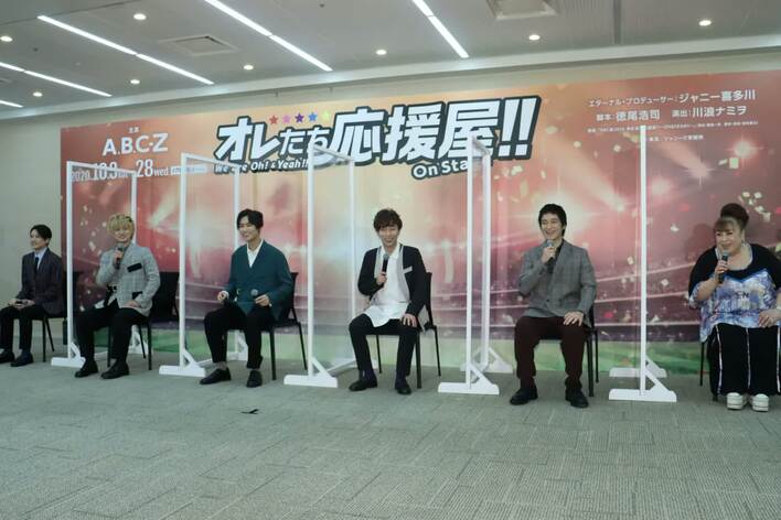 10月3日から東京・日本青年館ホールで上演される舞台「オレたち応援屋!!On Stage」は、A.B.C-Zが応援屋となって応援してほしい人にエールを届ける同映画の前日譚となり、舞台では、どうやって応援屋が結成されたのかが描かれ、映画ではその後の活躍が描かれる。