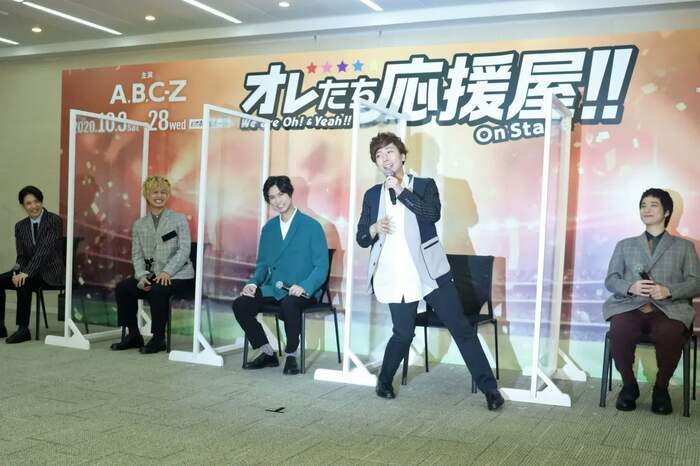 自粛期間中、 A.B.C-Z はエンターテインメントの役割について考えたそうで、五関は「自粛期間中は、家から一歩に出たら時間が止まっているような孤独感を感じて。そんな時、たまたま電話した友達と何気ない話をした時に、同じ悩みを持っているなど、1人じゃないと思った時にすごく軽くなった」とエピソードを披露し、「みんな孤独感が一番怖いんじゃないかと思う。舞台やエンターテインメントの活動を通して、まずはみなさんに1人じゃないんだよっていう思いを発信していきたい」とコメント。