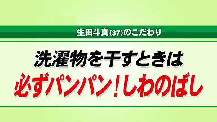 「このこだわり…気になる?」というテーマでは、生田の意外なこだわりが紹介された。生田は、洗濯物を干す時に、ハンガーにシャツを掛けた状態で激しめにパンパンと振ってシワを伸ばしているという。
